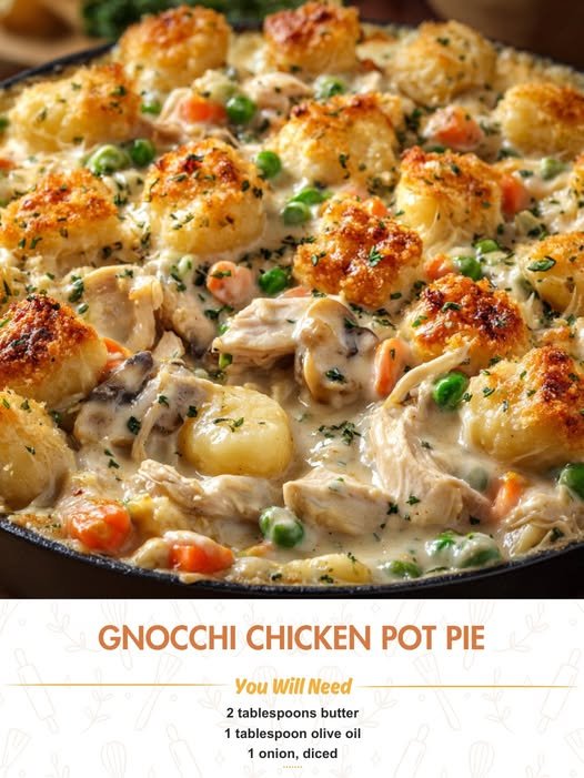 Gnocchi Chicken Pot Pie is a cozy, family-friendly meal that combines the creamy, savory flavors of classic chicken pot pie with soft, pillowy gnocchi. Instead of a traditional pastry crust, tender potato gnocchi are folded into a rich chicken and vegetable filling, making this dish hearty, satisfying, and perfect for any season. It’s an excellent option for a comforting dinner that feels special without being complicated.
