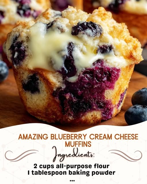 Amazing Blueberry Cream Cheese Muffins are soft, moist, and bursting with juicy blueberries, with a rich cream cheese center that makes them truly irresistible. Perfect for breakfast, brunch, or an afternoon treat, these bakery-style muffins combine sweet berries, tender crumb, and a creamy surprise in every bite. They’re easy to make at home and guaranteed to impress family and guests alike.