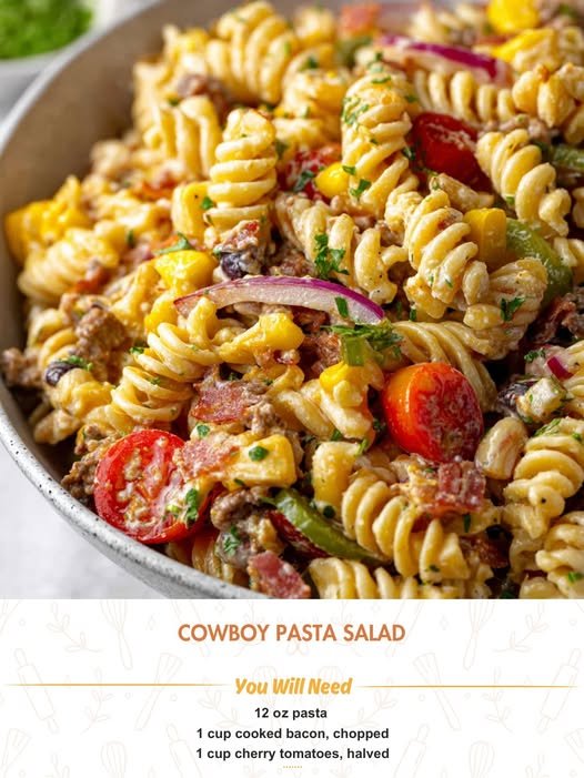 Cowboy Pasta Salad is a bold, colorful, and satisfying dish inspired by classic Southwestern flavors. Packed with pasta, beans, vegetables, cheese, and a smoky dressing, this salad is perfect for potlucks, BBQs, picnics, or as a filling lunch. It’s easy to customize, budget-friendly, and tastes even better after chilling, making it a great make-ahead recipe.