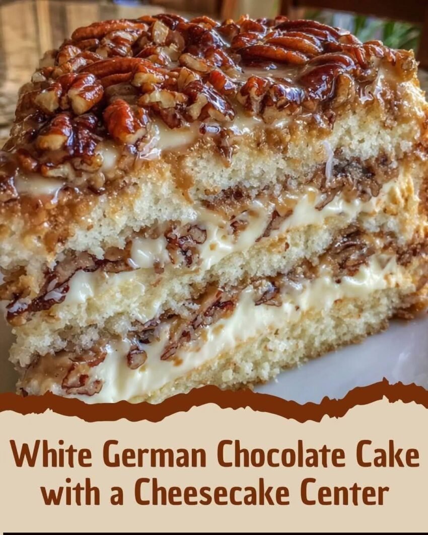 This White German Chocolate Cake with a Cheesecake Center is a luxurious dessert that combines three irresistible layers: moist white chocolate cake, a rich and creamy cheesecake filling, and the classic coconut-pecan German chocolate topping. The result is a stunning, bakery-style cake that is perfect for birthdays, holidays, or any special occasion.